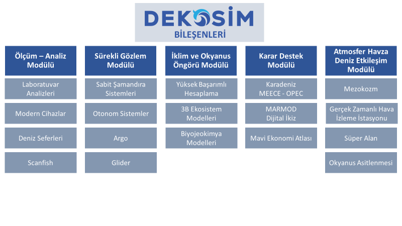 Deniz Ekosistem ve İklim Araştırmaları Merkezi (DEKOSİM), Türkiye’nin deniz ekosistem ve iklim araştırmalarında bilimsel açıdan Avrupa ülkeleri ile rekabet edebilecek düzeye gelmesi için oluşturulan bir araştırma merkezidir. DEKOSİM, ulusal kurum ve sektörlere yenilikçi çözümler sunan, uluslararası deniz biliminde öncü konumda bir deniz bilim araştırma altyapısı olmayı amaçlamaktadır. DEKOSİM deniz bilimlerinde mükemmeliyet vizyonu ile Türkiye denizlerinde uzun süreli ve sürekli gözlem kapasitesinin arttırılması ve bunlardan elde edilen verilerin iklim ve ekosistem araştırmalarında kullanılmasını hedeflemektedir. Bu hedefler doğrultusunda, DEKOSİM faaliyetlerini 5 farklı bileşen altında gerçekleştirmektedir.